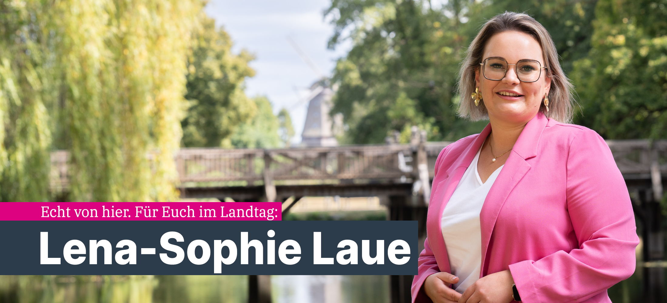 Ich bin Lena-Sophie Laue, Landtagsabgeordnete für den Wahlkreis Gifhorn-Nord/Wolfsburg.